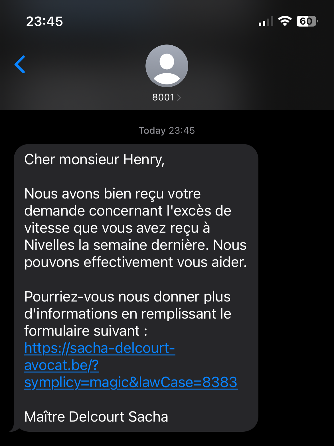 5. VoxNow envoie un SMS personnalisé avec le formulaire Symplicy adéquat à votre client.